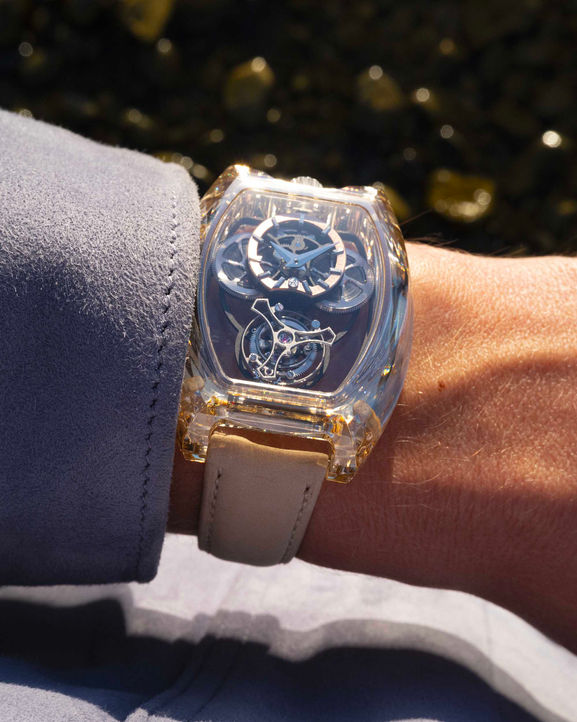 "In 2023, ArtyA presented at Only Watch the world’s very first watch with a round case entirely sculpted in moissanite. Today, the Maison pushes the boundaries even further with a tonneau case architecture featuring complex curves."